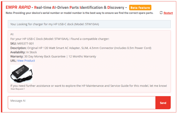 Once you submit your device details, our advanced AI algorithm analyses the information. It compares your query with our extensive database of spare parts using machine learning techniques to identify the best match for your device.